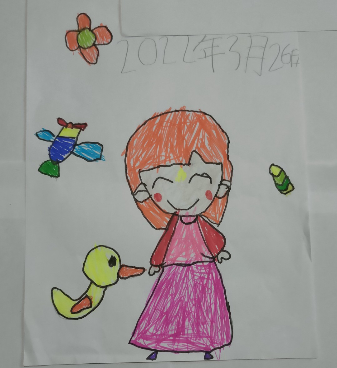 今天是2022年5月4,早上我起来的时候刷了牙又洗了脸。然后吃完早餐早餐煮的是汤圆吃完之后妈妈在准备东西出去玩,然后他说我们也要准备准备就要出去玩了我说妈妈可以带我的小包出去吗?他说可以可以可以然后我就拉着小宝也问了爸爸问了好几次穿鞋子的那个时候我也问了爸爸说不可以,我就说好的,然后我就放在爷爷奶奶的牛奶盒那里,然后我也穿上鞋。我刚要穿袜子的时候我妈妈说今天太热了穿两双凉鞋就可以了然后我就被穿袜子穿了凉鞋然上车爸爸问我去哪里?我说去双月湾,弟弟又说去大广场 我要去大广场,我说我要去双月湾双月湾,弟弟就一直说要去大广场,然后爸爸就开车带我去了双月湾,到双月湾弟弟又说我要去大广场我不要来双月湾,爸爸悄悄的跟他说来这里是是要给你抓兔子的呀,然后弟弟就说我要抓兔子我要抓兔子我也说我要抓兔子我就一直说我要抓兔子,后来妈妈发现了红果,妈妈就一直在那抓红果子,忘了抓小兔子了。然后我们又走走走,妈妈又发现了有很多果子,然后妈妈就一直就在那摘红果子,然后我们在那发现了一个蜘蛛,爸爸说别打死他,他是好的蜘蛛,可是弟弟刚好把蜘蛛用铲子打死了,然后我们又来到吃饭的那里吃完饭,用完了那个车,车然后玩完之后我我就坐小白车回家了,然后回家的路上弟弟比我睡得早一点,然后我又睡得比他晚一点,回到家就休息一下,然后我们我就吃完饭,然后画画,画的是嗯,有一只小羊发现,带回来给了小熊一个好吃的,然后小熊又拿出里面的好吃的竹笋给了小袋鼠,小袋鼠吃了觉得有病毒细菌就吐出来了,然后里面果然有散着细菌,有着小熊没有微笑,那个小袋鼠和小羊都很急,小羊还没吃呢,小熊就吃了好多好多好多的好吃的竹笋,他就身体不健康看了,大灰狼悄悄的跑的远远的。