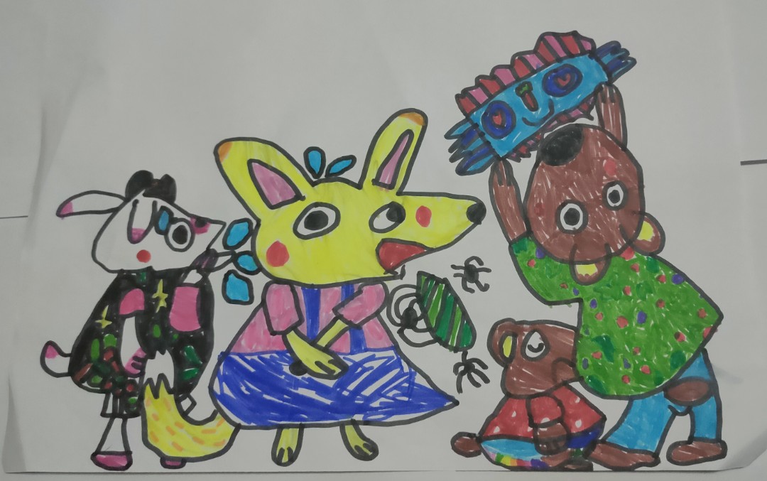 20220504我画的画小心大灰狼小羊的衣服有很多种颜色。有黄色绿色,有的是浅绿色,深绿色,还有红色,还有棕色和玫红色。天蓝色。黄袋鼠的颜色有粉色还有深粉色,还有深蓝色裙子是深蓝色,他的汗是天蓝色,他还有个小脸蛋。小熊给了他吃竹笋,被他吐出来,细菌就跑出来了。然后小熊就觉得好好吃就一直吃,把里面的全吃完了,小熊身上的颜色有深绿色,浅绿色,紫色,红色,还天蓝色。他抱着胡萝卜鼻子,眼睛爱星星的笑脸的小袋子吃了他也把包装袋觉得很好吃就也吃了。漂亮的小熊看到细菌很不高兴,小熊的衣服是红色也有白点点。小小的小内裤有天蓝色深蓝。这还有。棕色,深绿色。大的蝴蝶结是里面,中间是棕的,外面是黑。